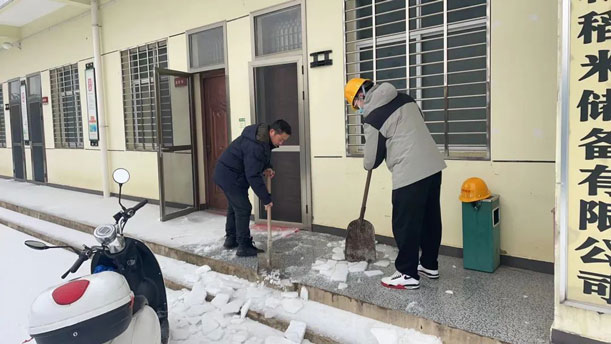 中心一线各库点、出租点、施工点在前期排查消除隐患基础上,认真防范寒潮雨雪对粮食仓储设施带来的安全隐患,进一步加强全员安全意识,深化每日巡查和安全日报制度,降低霰雪冰冻带来的隐患。阳逻库、华粮库全员参与对办公区及主干道铲雪除冰,及时开辟行车通道,确保运行通畅,目前两个库区均完成除冰保障任务。